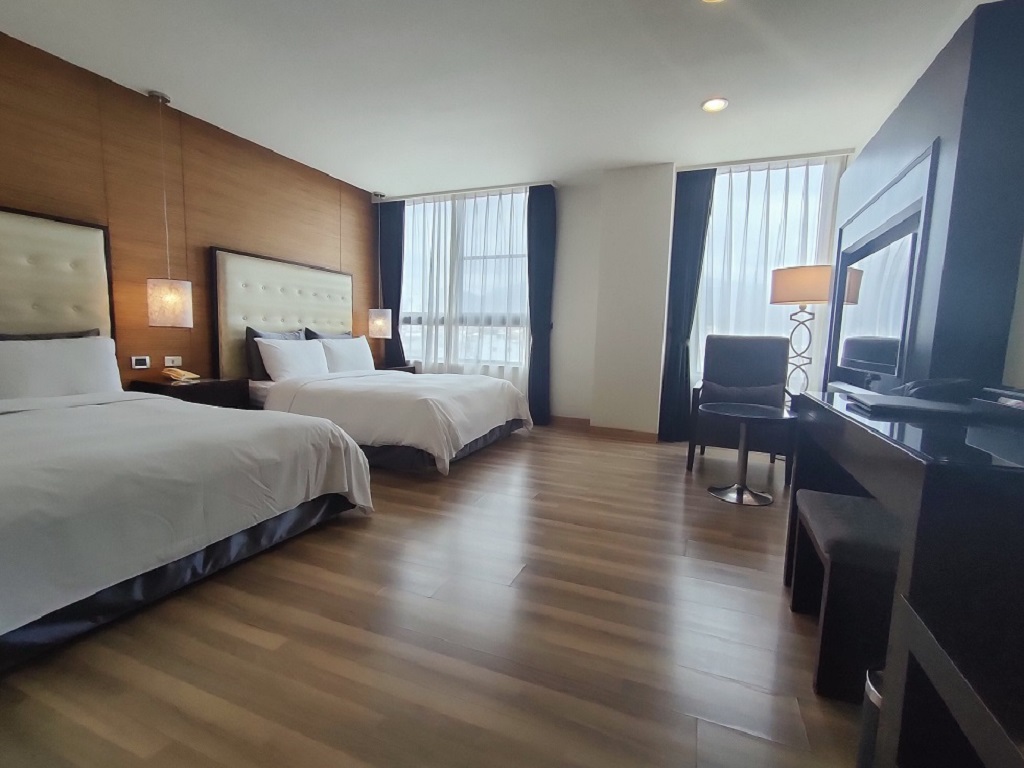 1. 2張標準雙人床 2. 電子RFID系統安全門鎖 3. 平面42吋LCD電視、全頻道有線電視 4.吹風機、毛巾、浴巾、室內用拖鞋 5. 高溫殺菌寢具 6. 進口即熱式熱水瓶、免費埔里礦泉水、免費咖啡及茶包 7. 電子保險箱 8. 自動空調控溫裝置 9. 靜音冰箱 10. 有免費停車場 (數量有限) 11. 嬰兒床、澡盆、板凳(數量有限需事先告知) 12.房內有免費WIFI使用